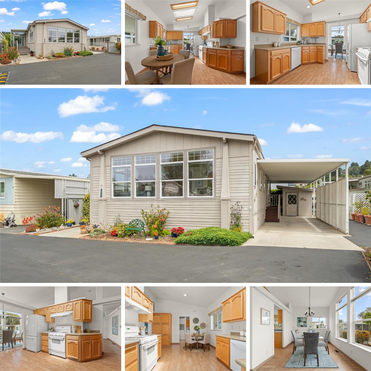 Welcome to 16 Primrose Street, a light filled retreat in Seacliff Park—Aptos’ premier 55+ resident-owned community just minutes from Seacliff State Beach, Nisene Marks trails, and Aptos Village. This beautifully maintained home features vaulted ceilings, skylights, and an open-concept layout that connects the spacious living room, dining area, and generously sized kitchen with abundant cabinetry.